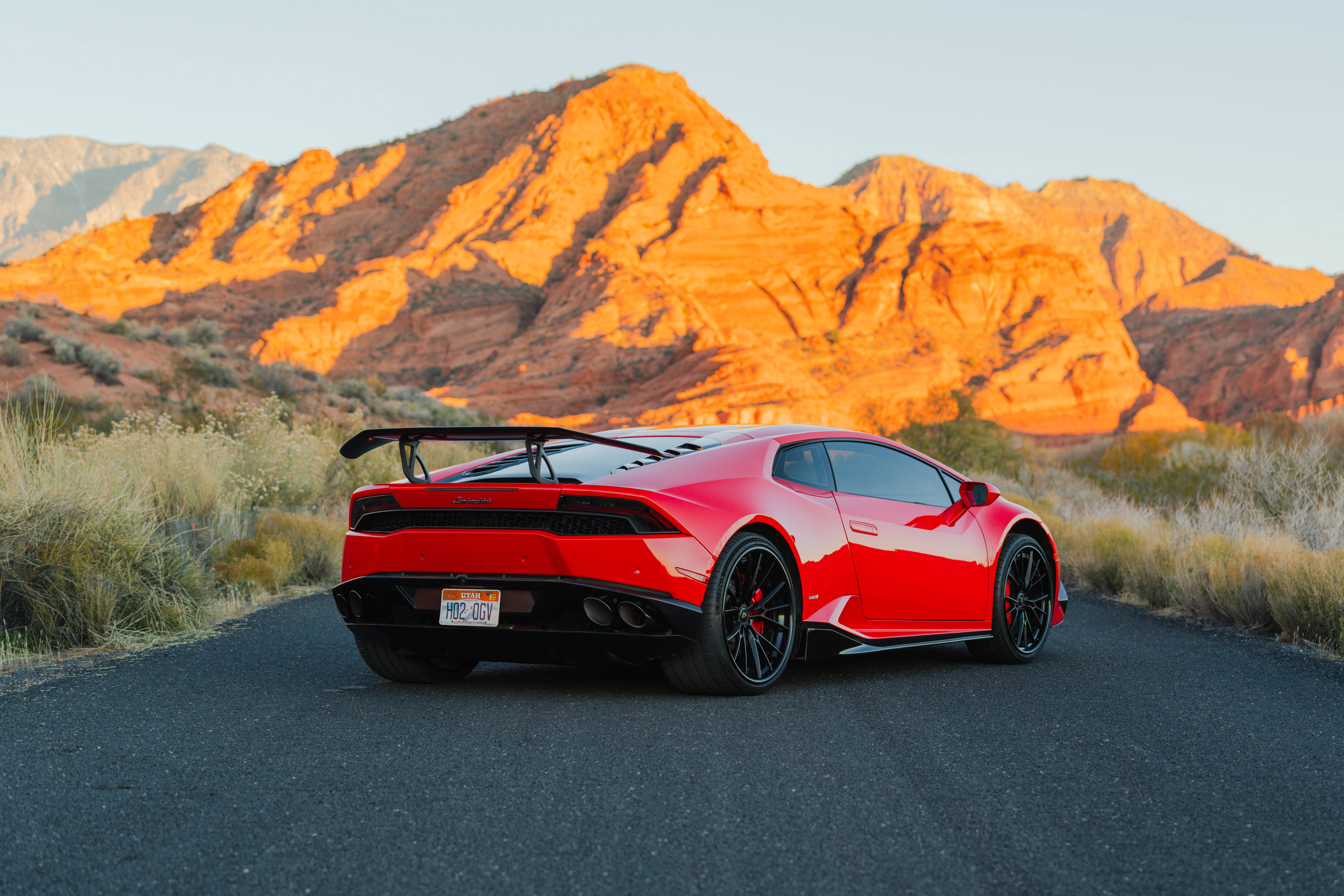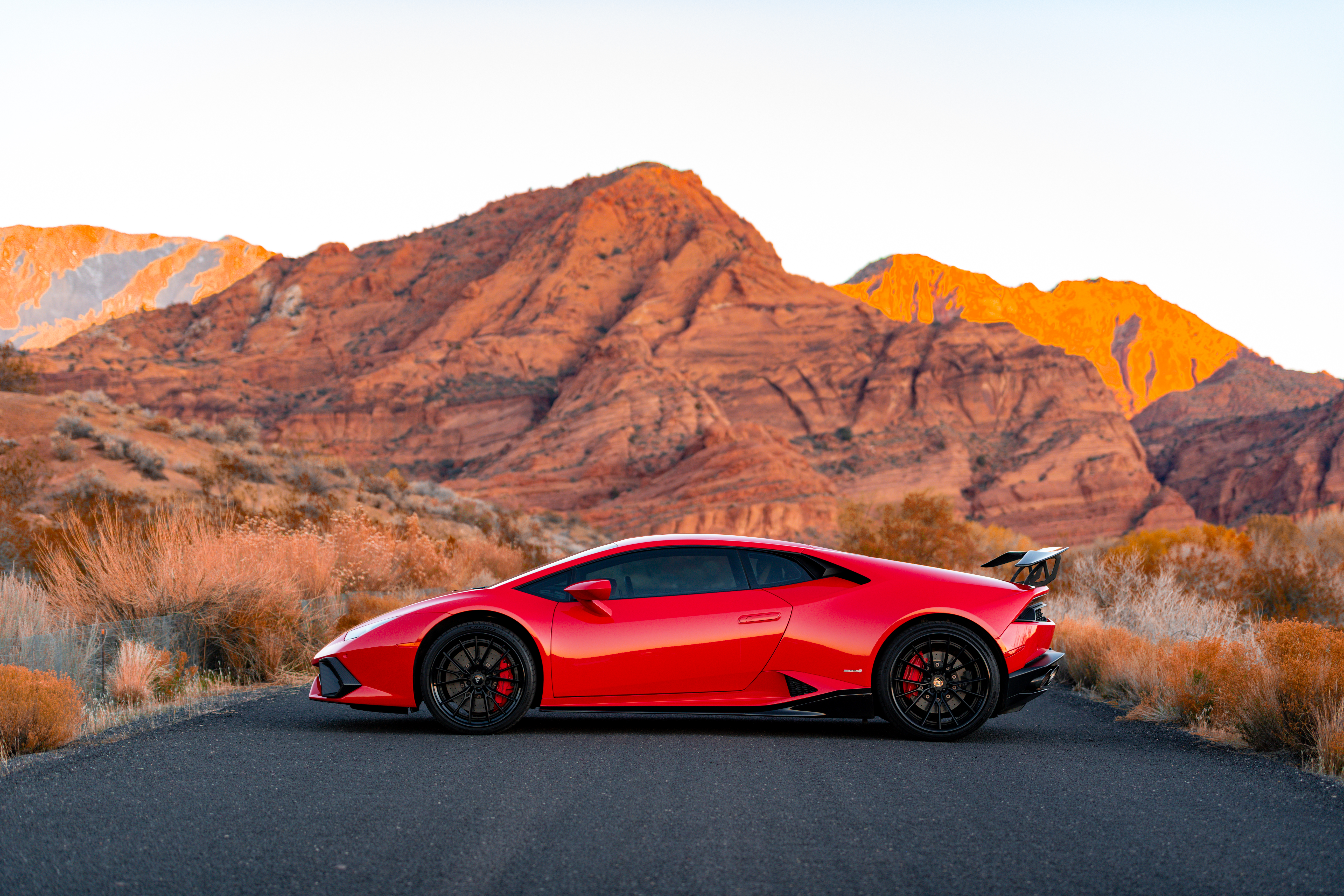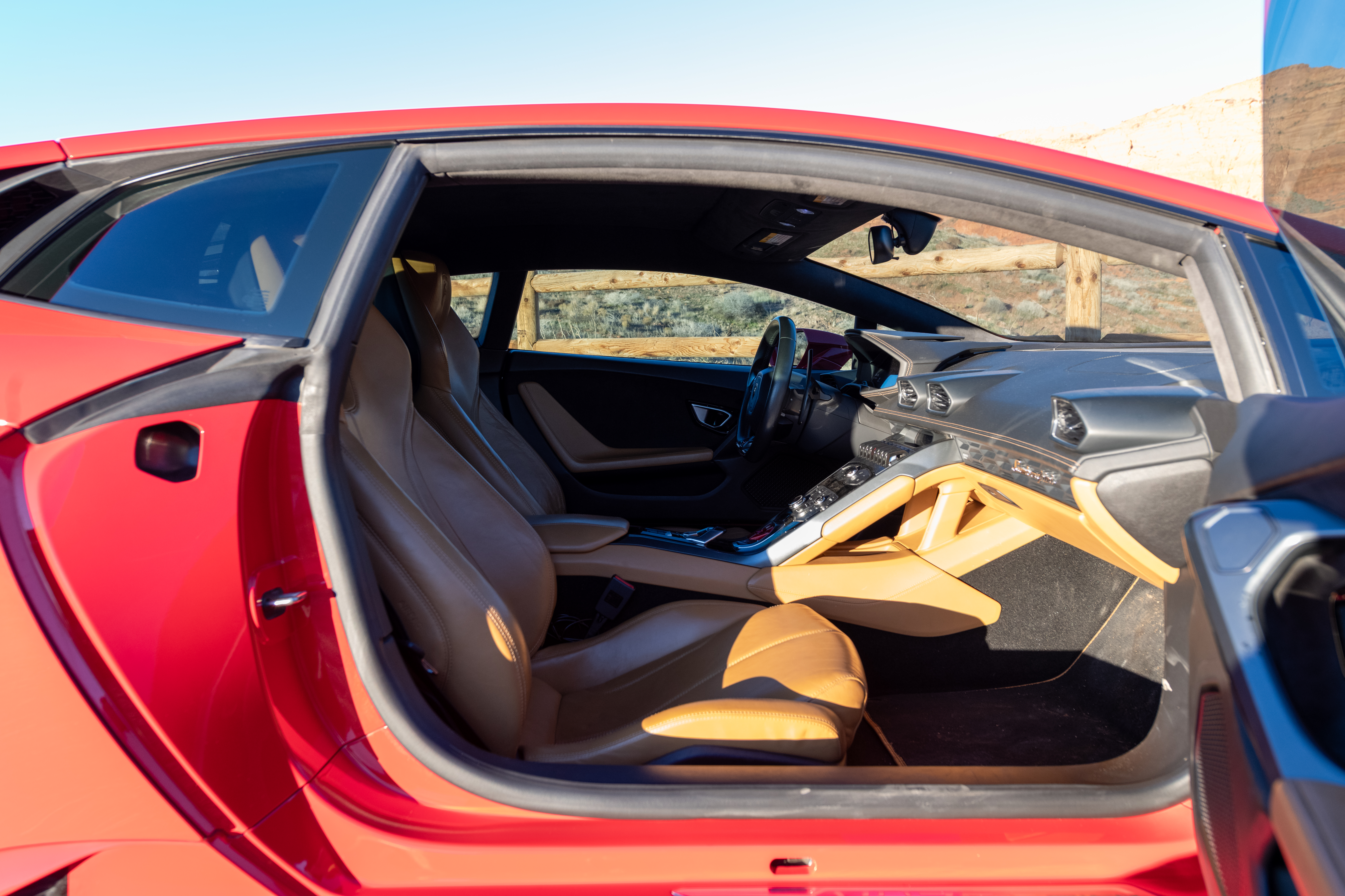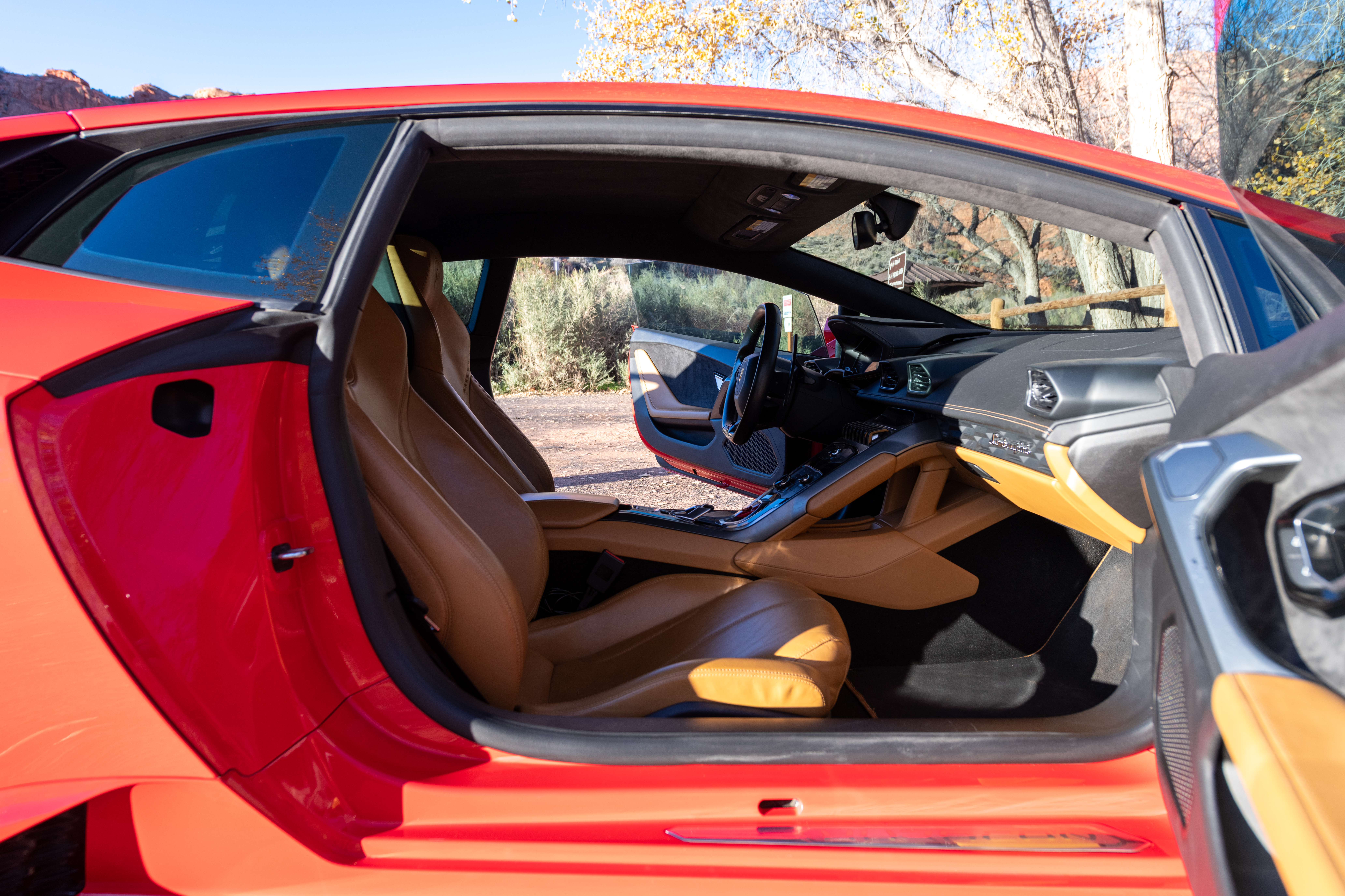 Absolutely stunning Lamborghini Huracan 610-4LP coupe in Rosso Mars Red, delivering just over 600 horsepower, 413lbs per ft of torque, matted with a 7 speed dual clutch gearbox that shifts effortlessly. This 2 seater, All Wheel Drive Supercar wants to run like Secretariat at the racetrack…. the 5.2 liter V-10 delivers each and every time you step on the accelerator. This sexy Italian beast weighs 3,419 lbs and has an 8,500rpm redline. This beauty boast a top speed of 202mph and effortlessly gets you from 0-60 in 2.8 seconds. This is a highly optioned car, coming with factory Navigation, front nose lift and rear backup camera, this exotic is no slouch and cant easily pull a 10.6 second 1/4 mile with the naturally aspirated mid engine making you feel like this car was created just for you…. this is the PERFECT racecar to explore the twist and turns of Southern Utah and our National Parks with. The exhaust is absolutely exhilarating, especially in the Corsa mode and you will find ZERO disappointments in this hand built machine. Reserve this for your trip now, and experience the best that Southern Utah has to offer.