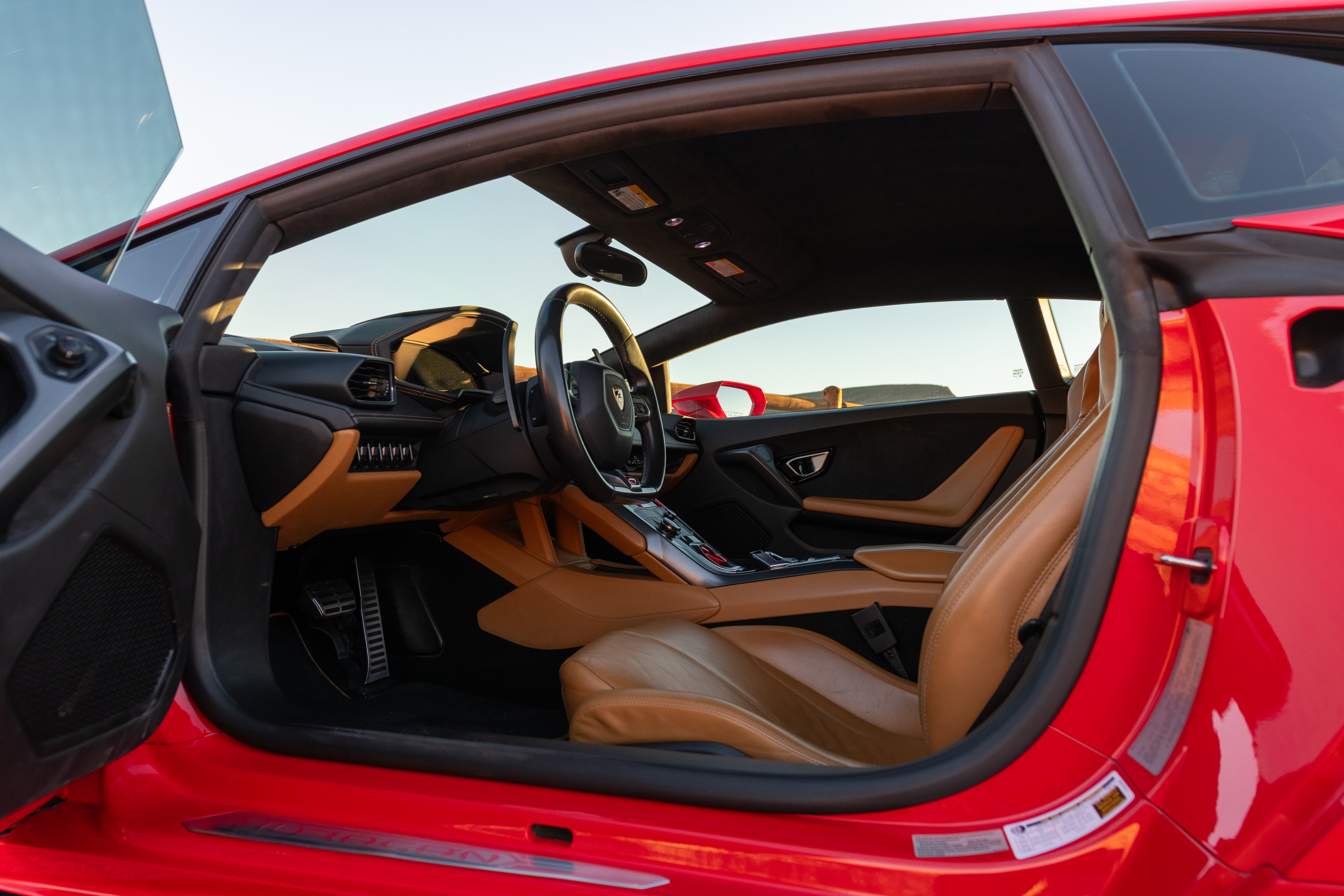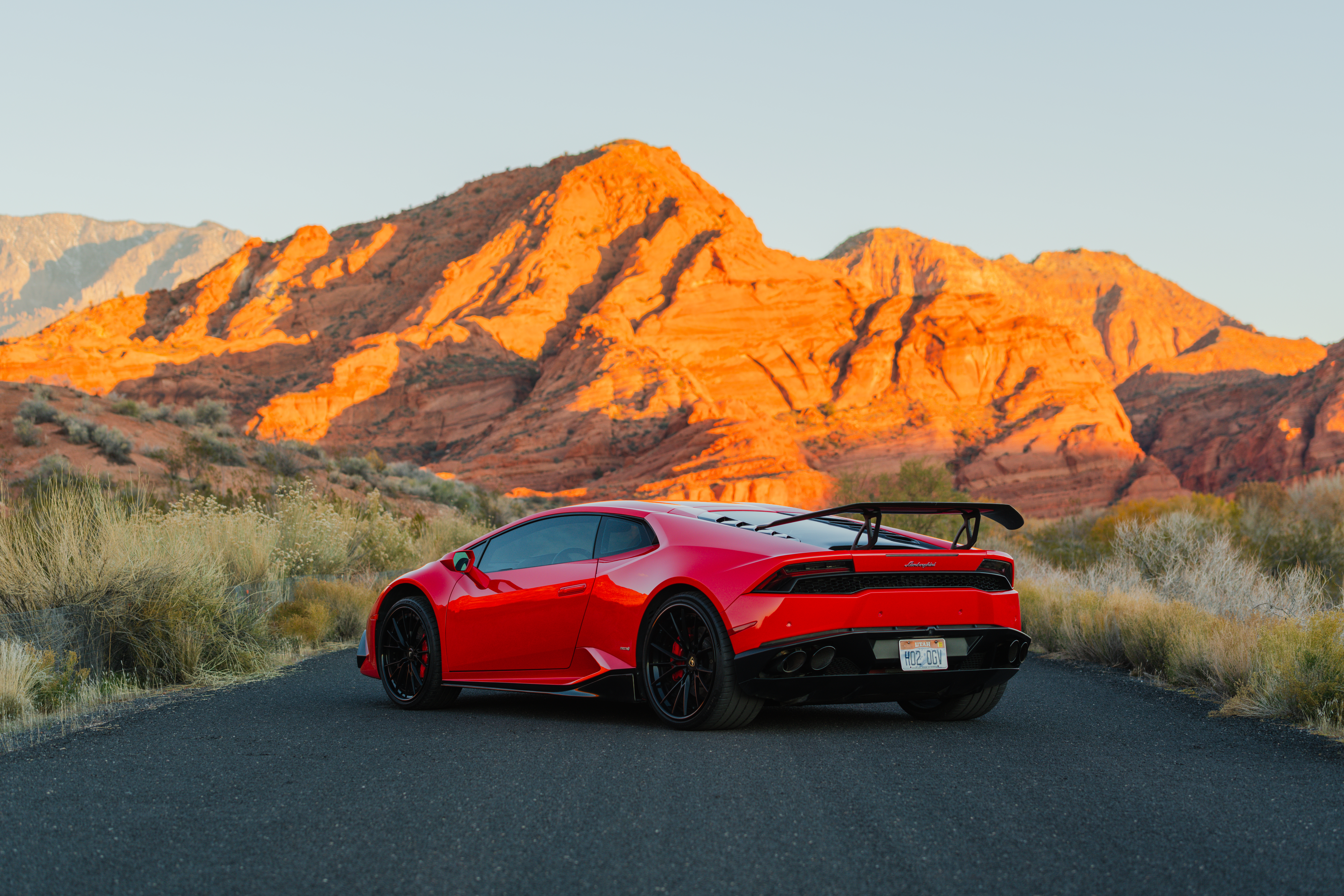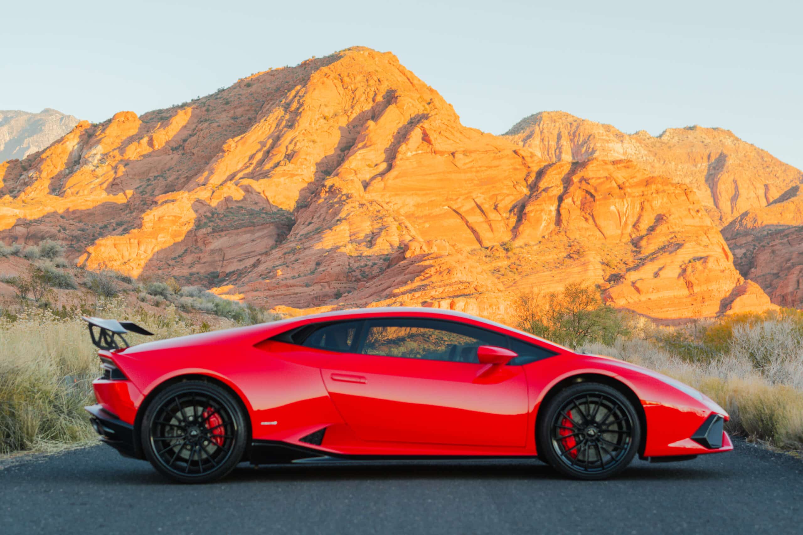 Absolutely stunning Lamborghini Huracan 610-4LP coupe in Rosso Mars Red, delivering just over 600 horsepower, 413lbs per ft of torque, matted with a 7 speed dual clutch gearbox that shifts effortlessly. This 2 seater, All Wheel Drive Supercar wants to run like Secretariat at the racetrack…. the 5.2 liter V-10 delivers each and every time you step on the accelerator. This sexy Italian beast weighs 3,419 lbs and has an 8,500rpm redline. This beauty boast a top speed of 202mph and effortlessly gets you from 0-60 in 2.8 seconds. This is a highly optioned car, coming with factory Navigation, front nose lift and rear backup camera, this exotic is no slouch and cant easily pull a 10.6 second 1/4 mile with the naturally aspirated mid engine making you feel like this car was created just for you…. this is the PERFECT racecar to explore the twist and turns of Southern Utah and our National Parks with. The exhaust is absolutely exhilarating, especially in the Corsa mode and you will find ZERO disappointments in this hand built machine. Reserve this for your trip now, and experience the best that Southern Utah has to offer.