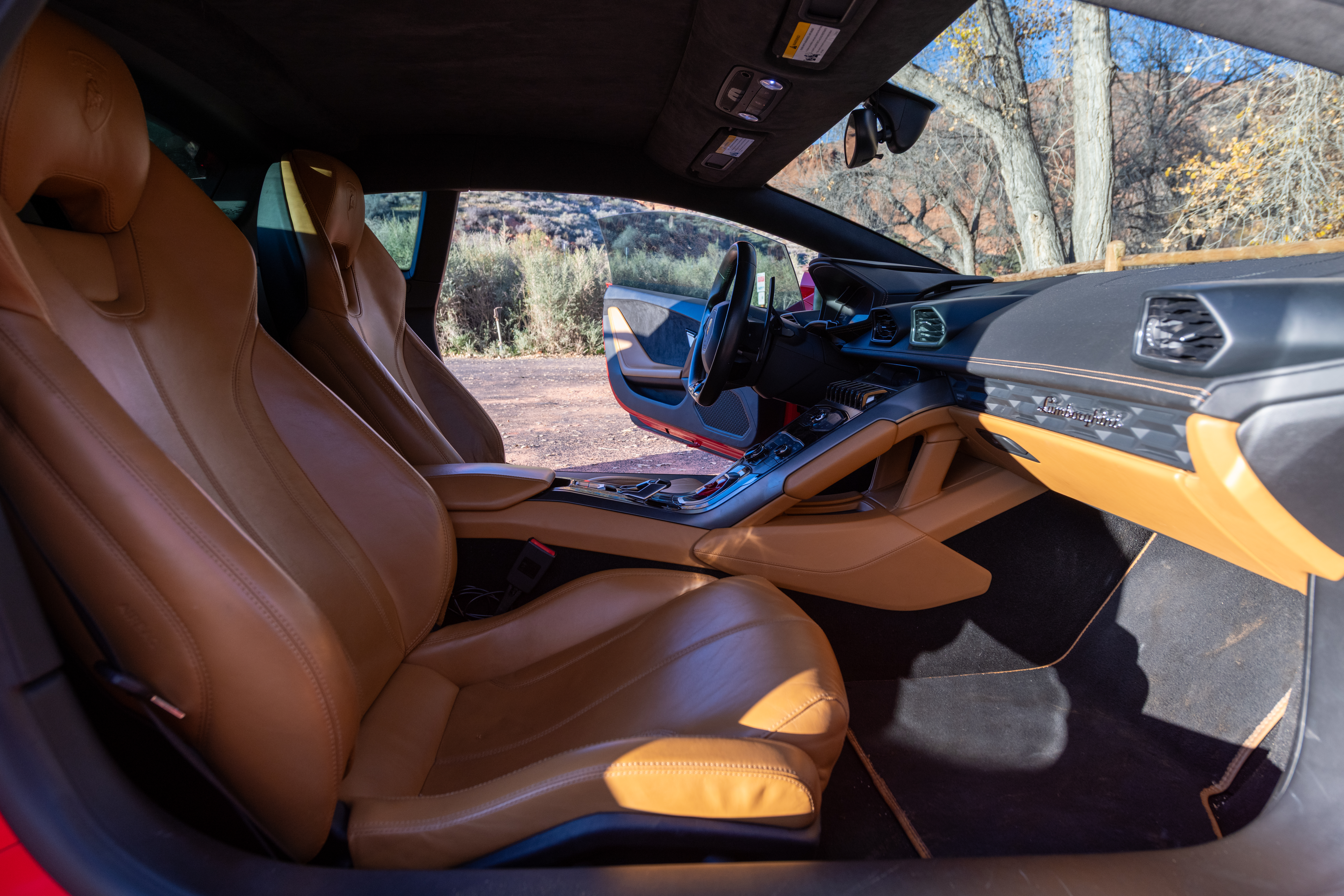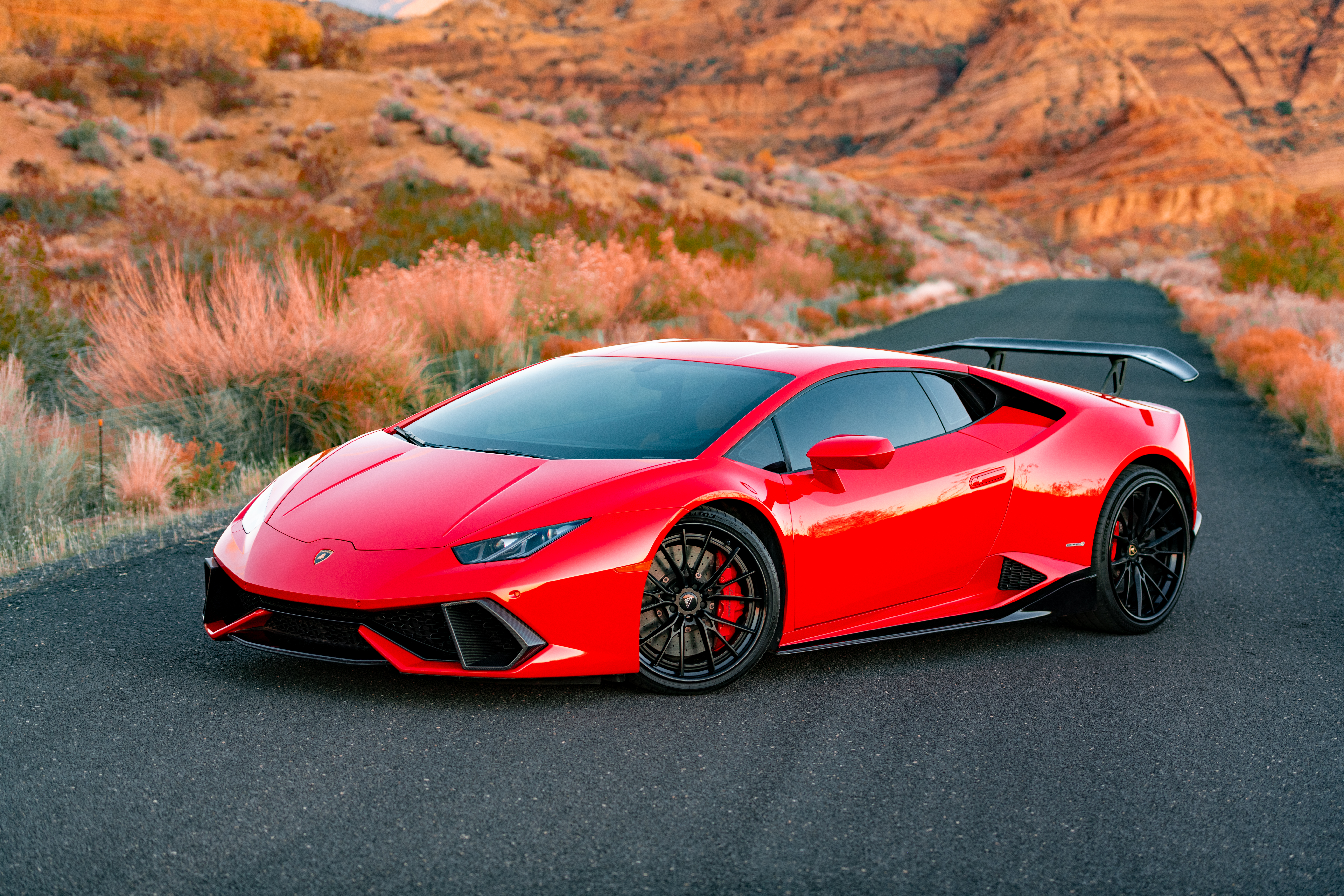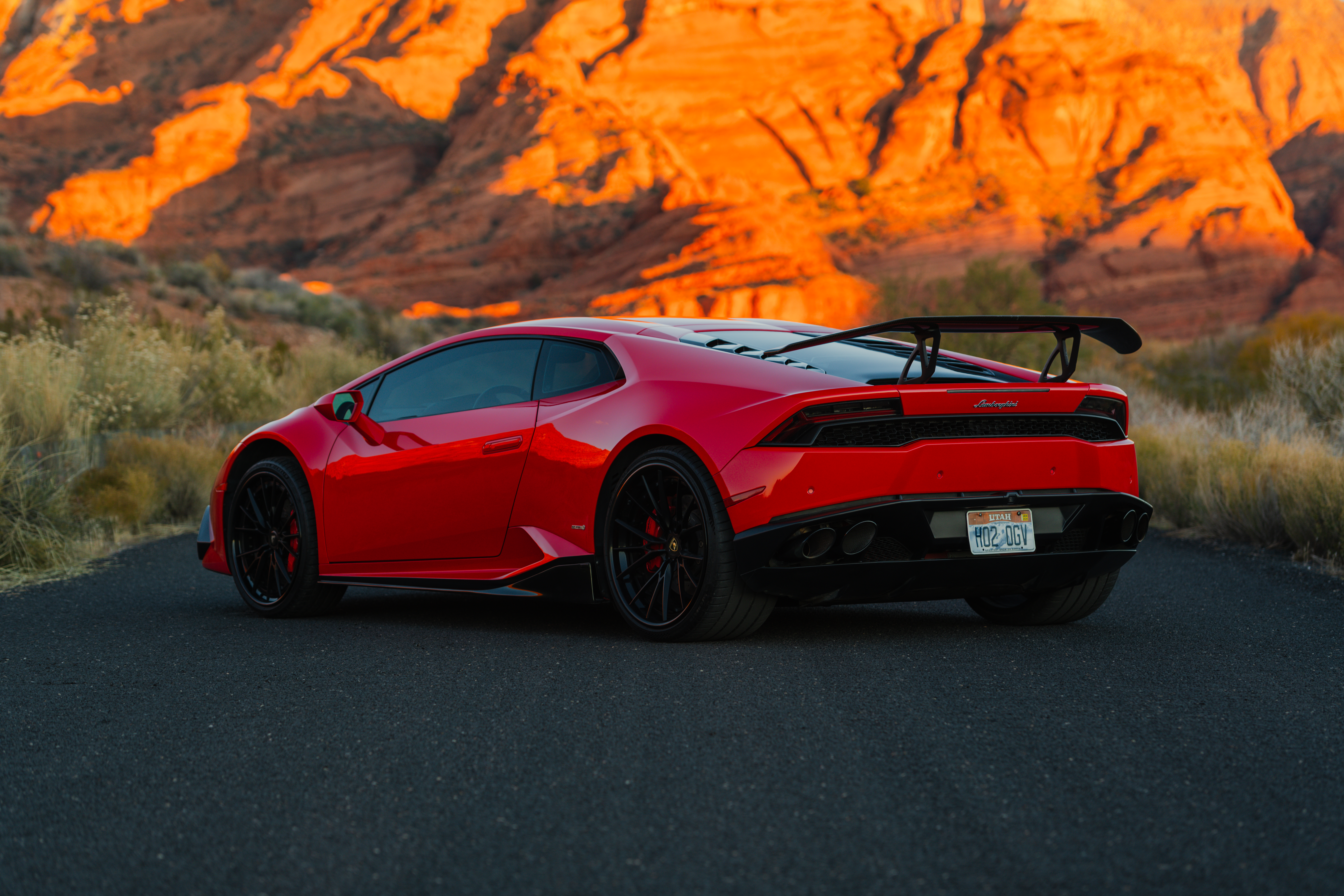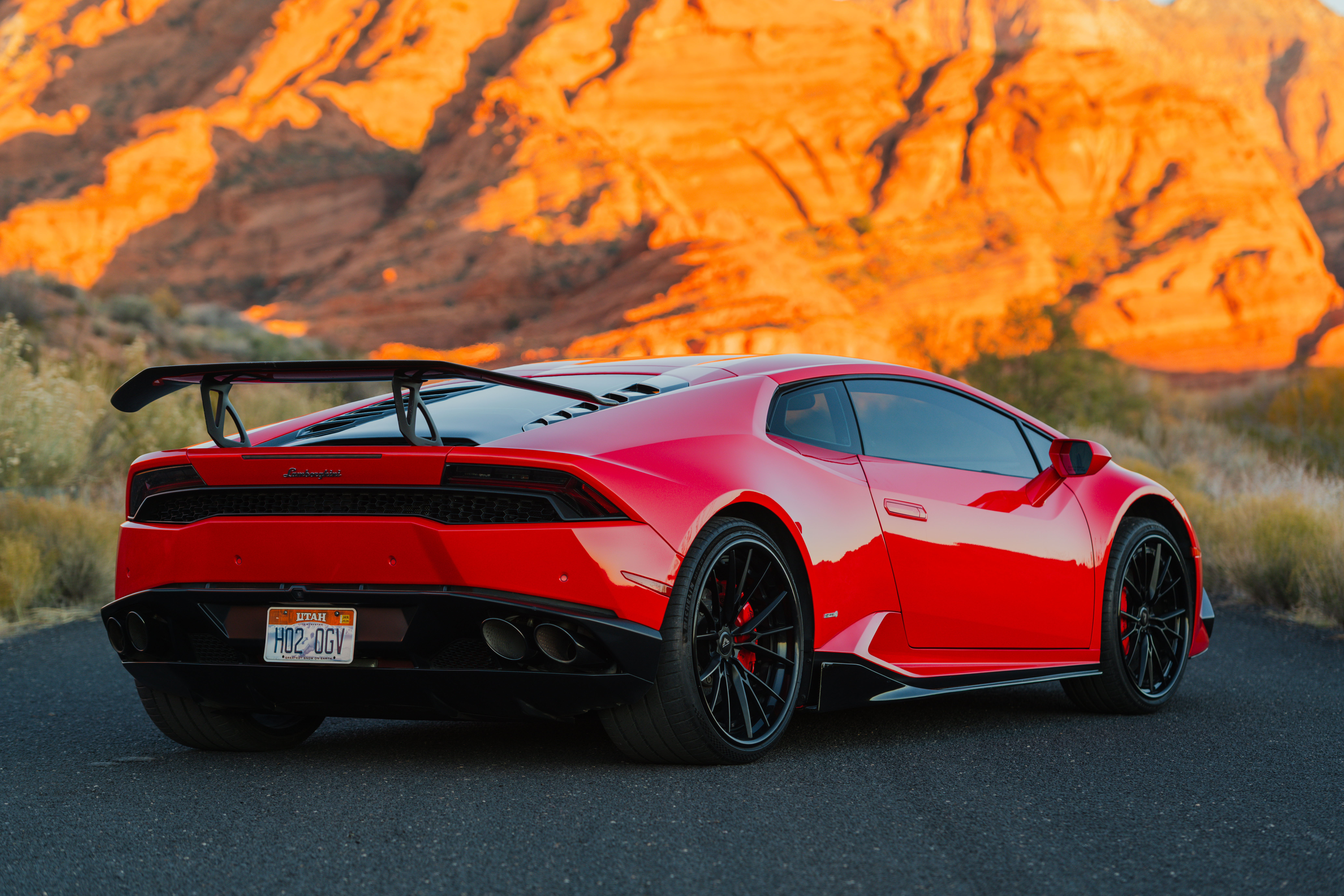 Absolutely stunning Lamborghini Huracan 610-4LP coupe in Rosso Mars Red, delivering just over 600 horsepower, 413lbs per ft of torque, matted with a 7 speed dual clutch gearbox that shifts effortlessly. This 2 seater, All Wheel Drive Supercar wants to run like Secretariat at the racetrack…. the 5.2 liter V-10 delivers each and every time you step on the accelerator. This sexy Italian beast weighs 3,419 lbs and has an 8,500rpm redline. This beauty boast a top speed of 202mph and effortlessly gets you from 0-60 in 2.8 seconds. This is a highly optioned car, coming with factory Navigation, front nose lift and rear backup camera, this exotic is no slouch and cant easily pull a 10.6 second 1/4 mile with the naturally aspirated mid engine making you feel like this car was created just for you…. this is the PERFECT racecar to explore the twist and turns of Southern Utah and our National Parks with. The exhaust is absolutely exhilarating, especially in the Corsa mode and you will find ZERO disappointments in this hand built machine. Reserve this for your trip now, and experience the best that Southern Utah has to offer.